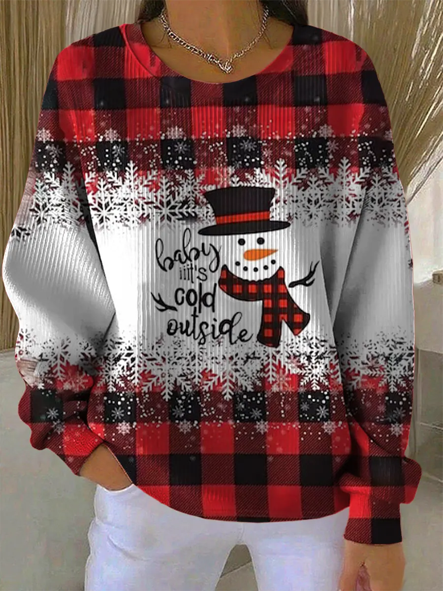 Christmas Snowman Plaid Art Print Casual Sweatshirt