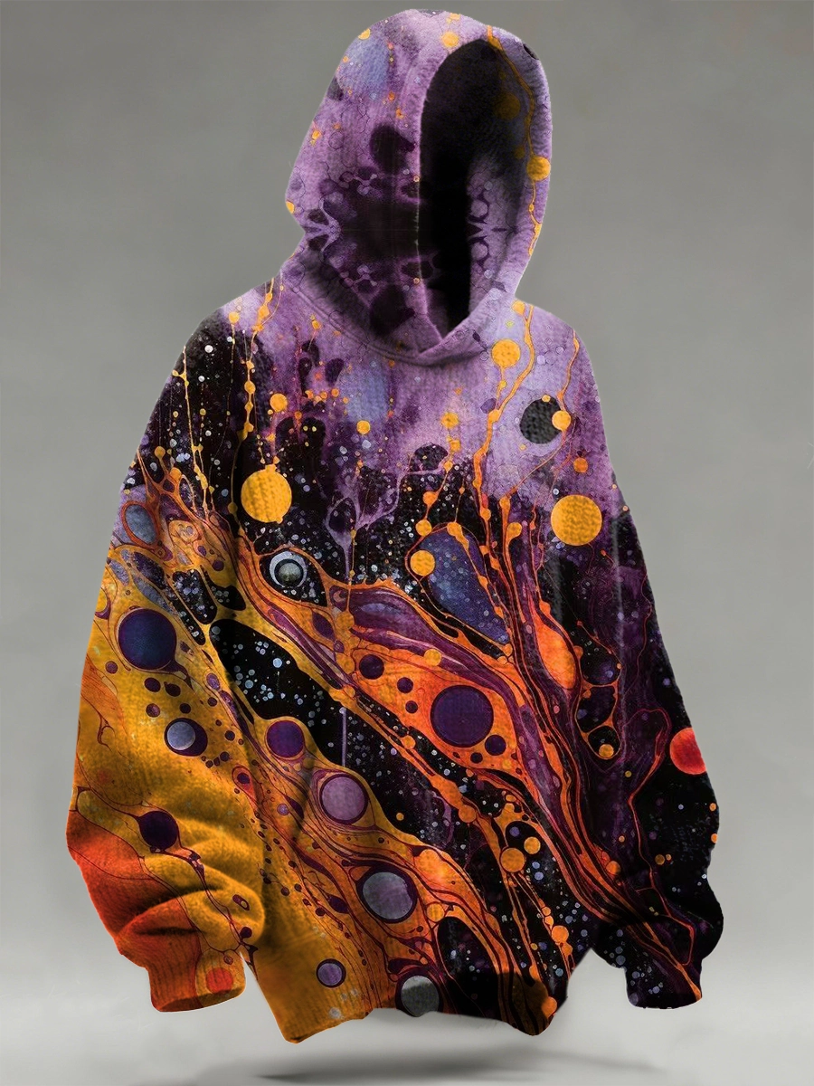 Retro Abstract Psychedelic Wave Art Print Knit Pullover Hooded Sweater