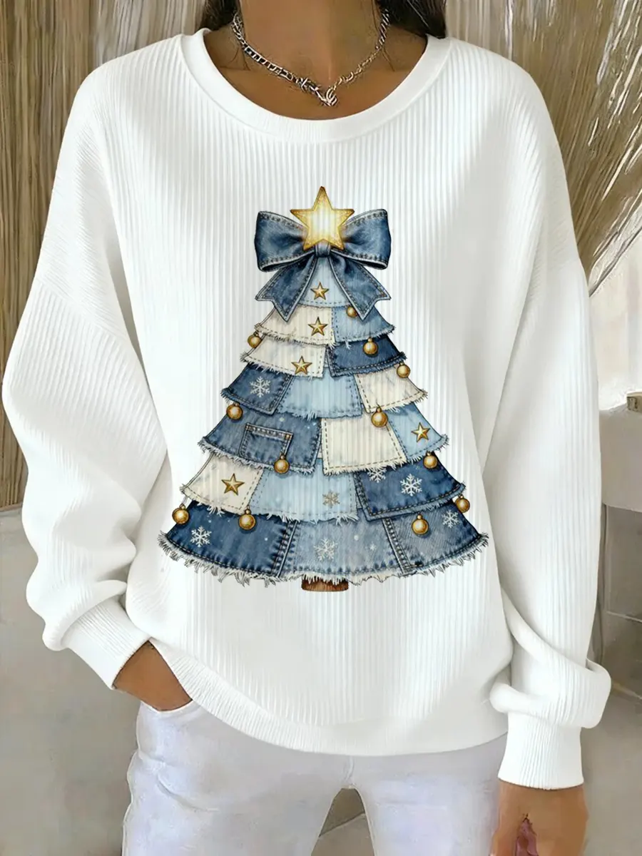 Christmas Tree Patchwork Art Print Casual Sweatshirt