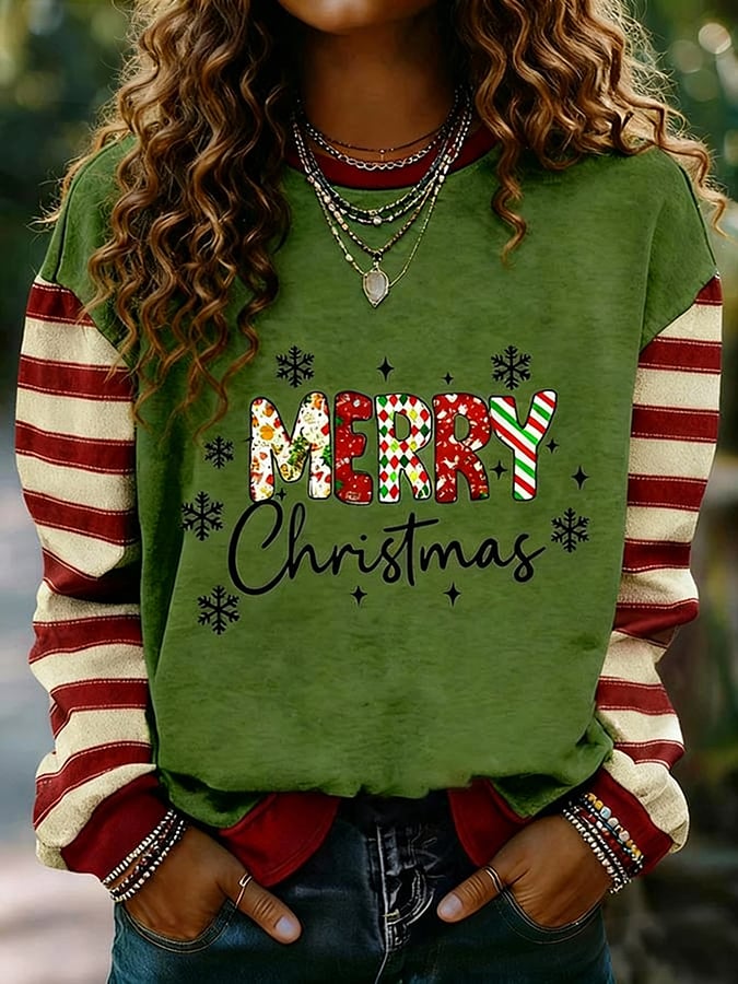 Women's Merry Christmas Striped Print Casual Sweatshirt