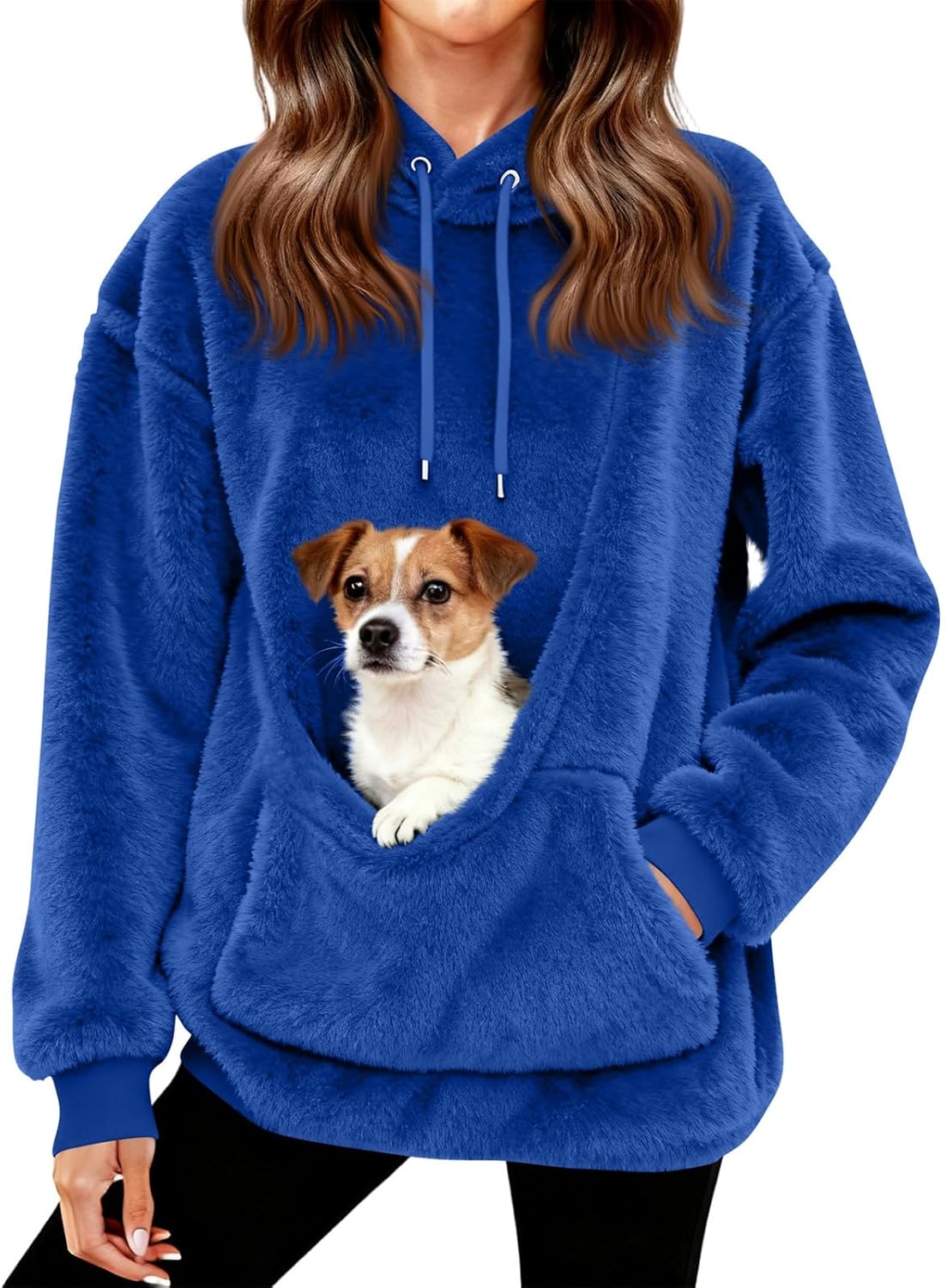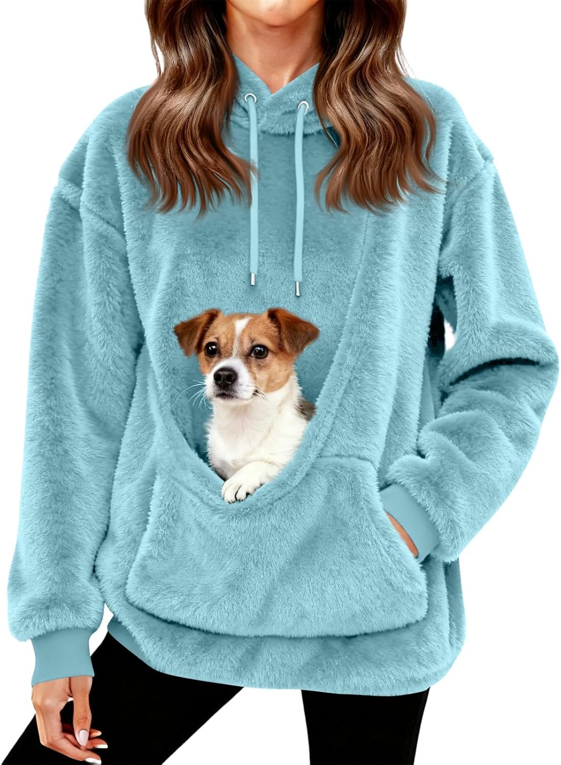 Womens Hoodie with Dog Pouch Fuzzy Fleece Kitten Cat Puppy Holder Kangaroo Pocket Pet Carrier Pullover Sweatshirts
