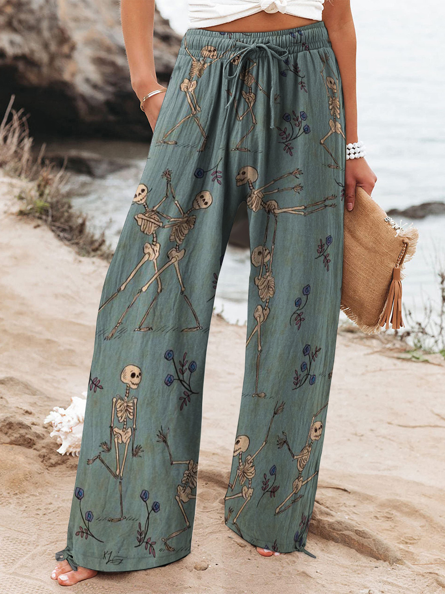 Decorative Pattern of Skeletons Dancing Pas De Deux Cotton And Linen Casual Pants