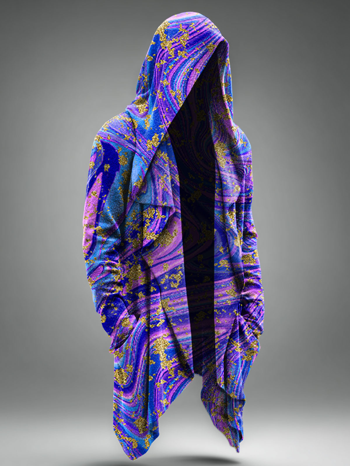 Multicolor Abstrct Flowing Gold Art Print Casual Hoodie Cardigan