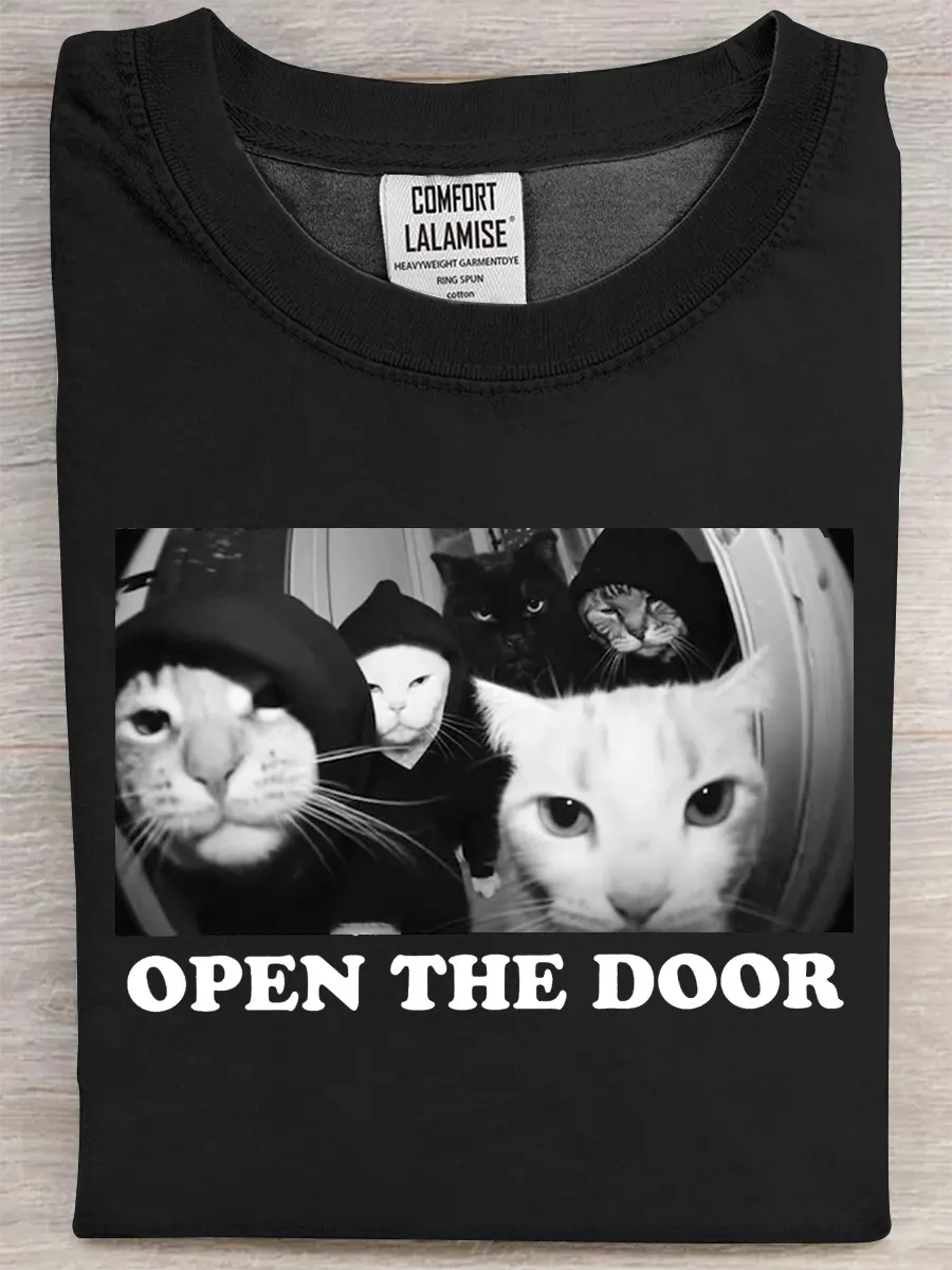Retro Fun Cat Art Print Casual Pure Cotton Short Sleeved T-shirt