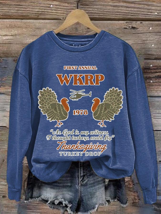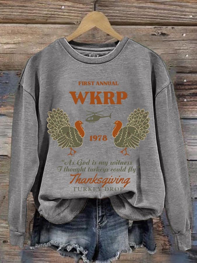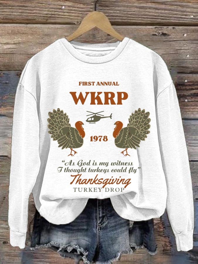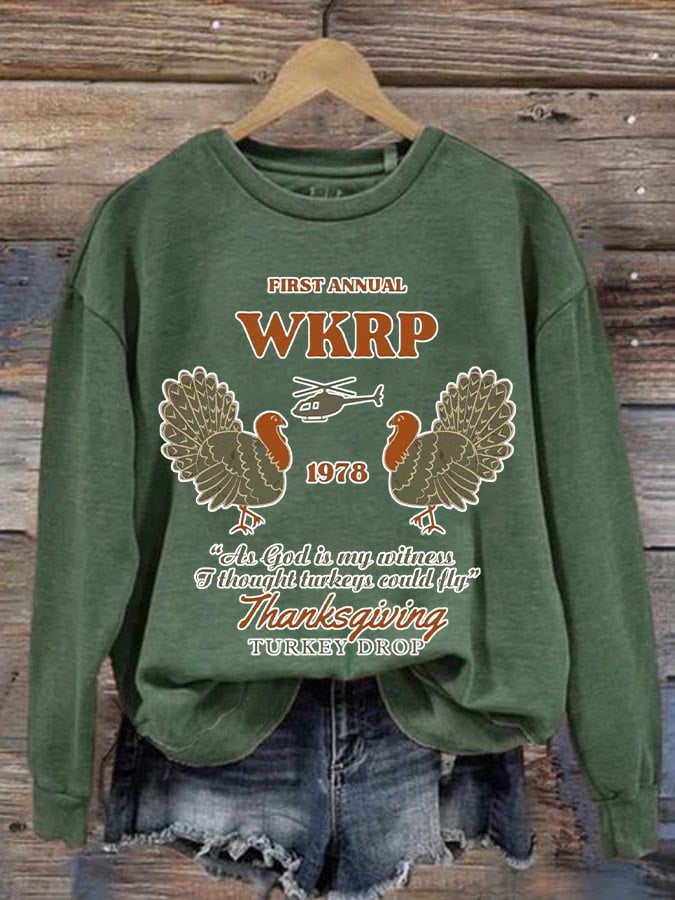 Women's As God Is My Witness I Thought Turkeys Could Fly Printed Round Neck Sweatshirt