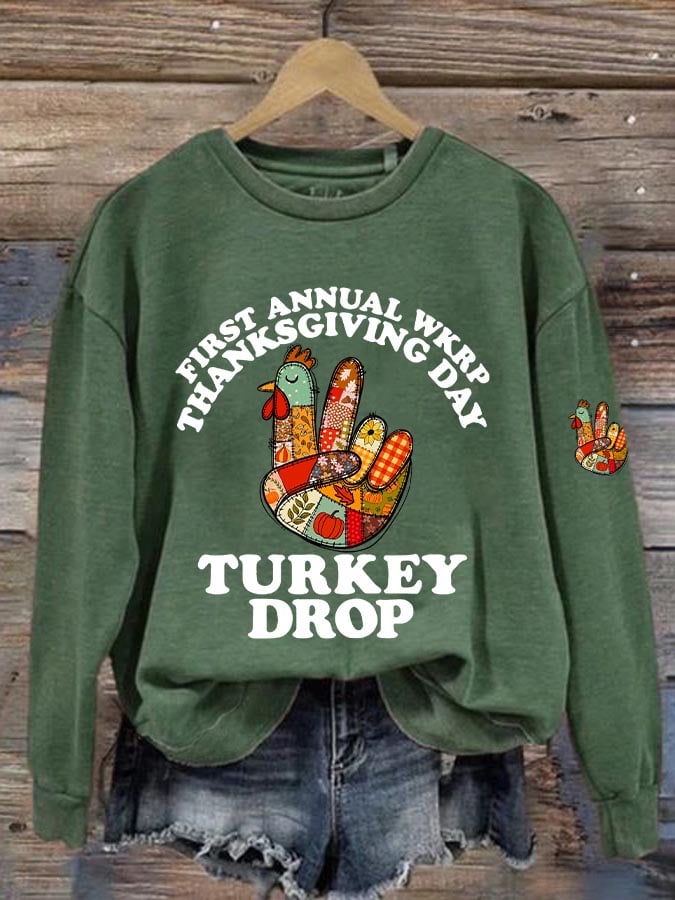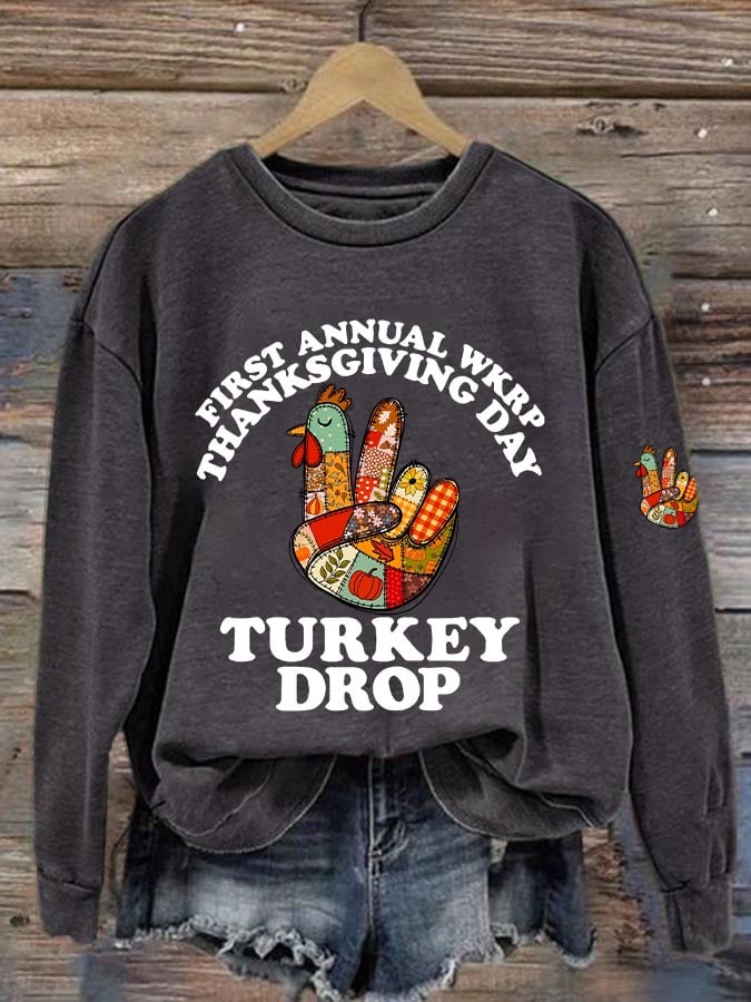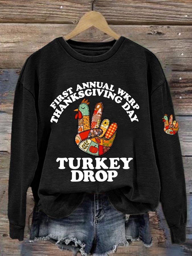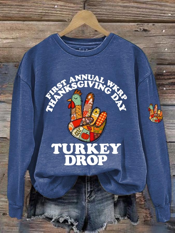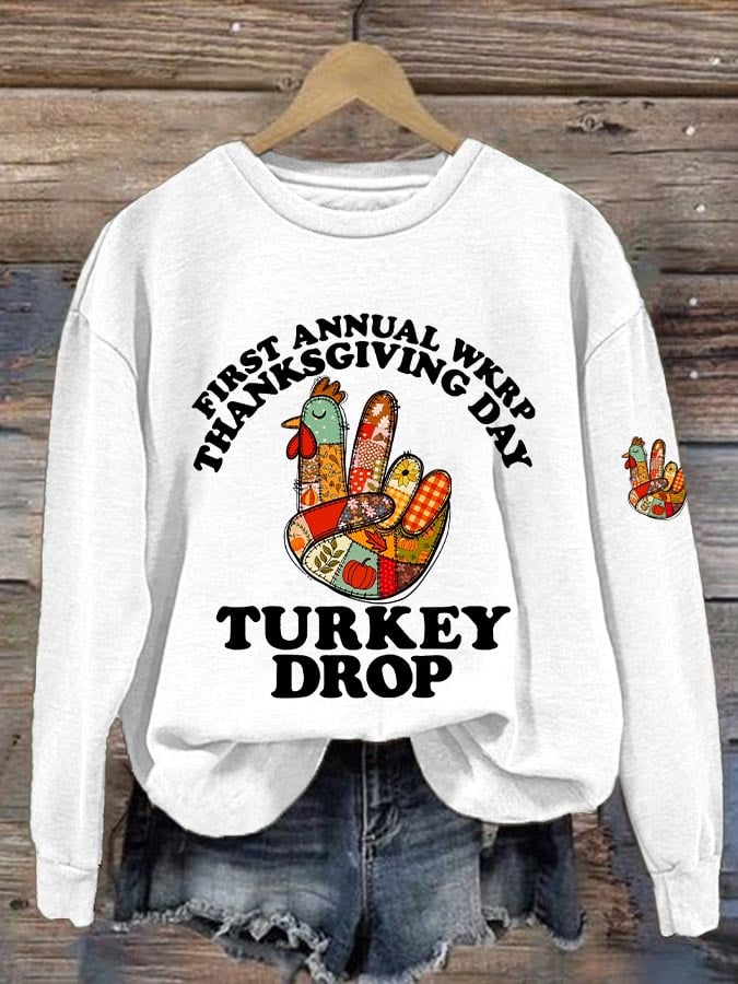 Women's Thanksgiving Turkey Printed Round Neck Sweatshirt