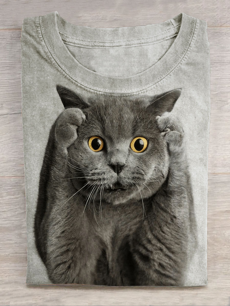 Cat Art Print Casual Short Sleeve Top