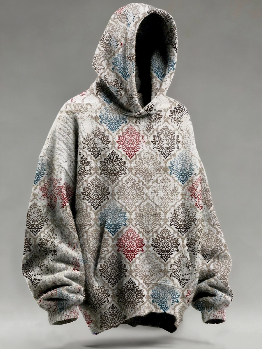 Retro Abstract Ethnic Totem Art Print Knit Pullover Hooded Sweater
