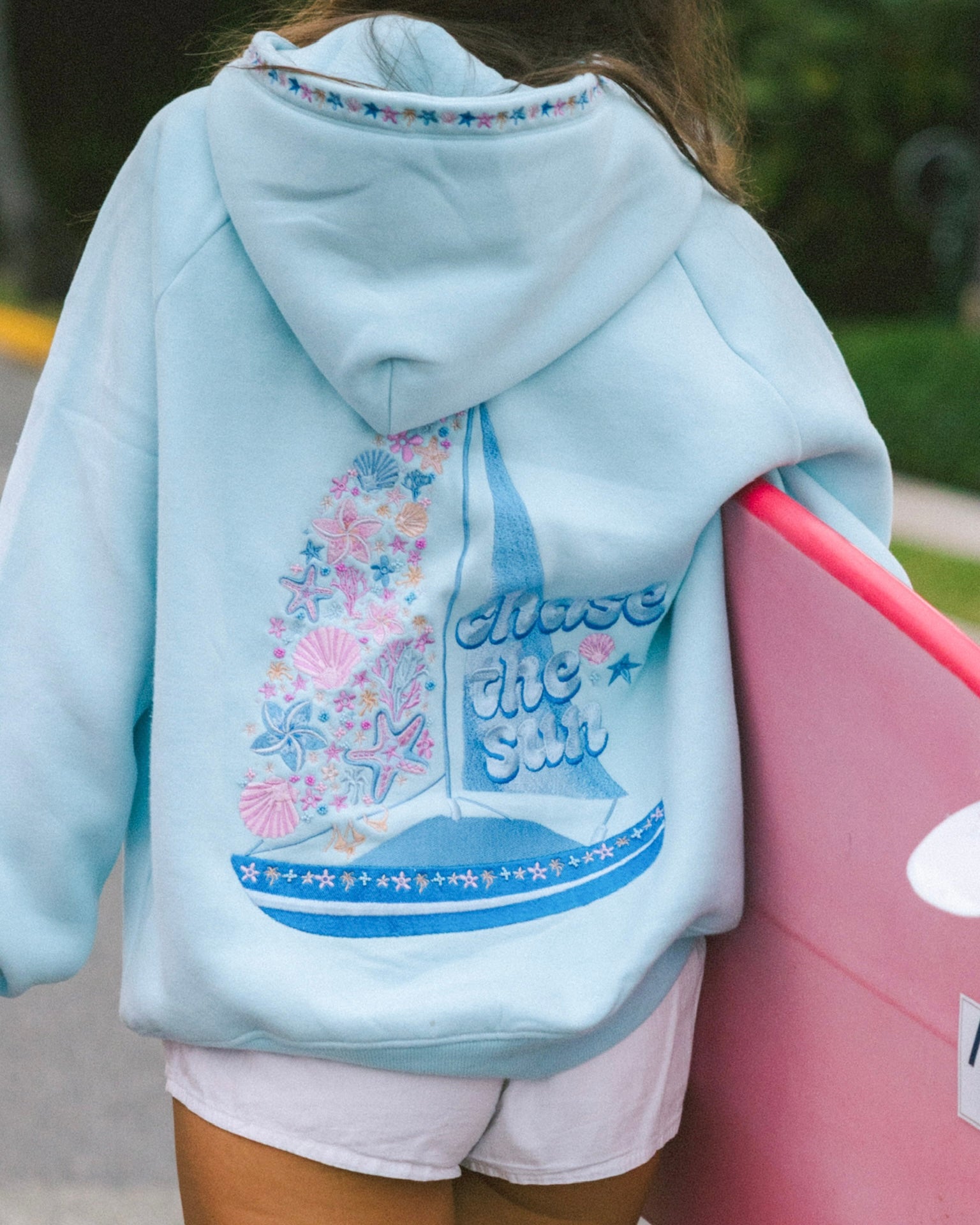 “Chase the Sun” Relaxed Hoodie in Sky Blue